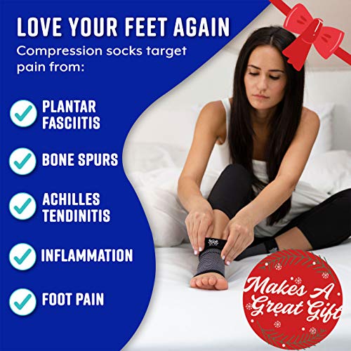 Bitly Plantar Fasciitis for Women & Men Socks Foot & Ankle Compression Sleeve, Black, XL