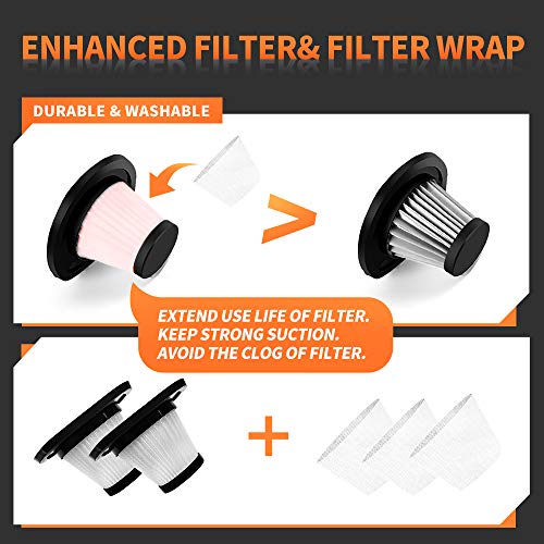 Double Filtration: The filter of this vacuum for car is covered with a filter wrap. It is designed to keep stable suction, extend the use life of the filter and avoid the clog of the filter soon.