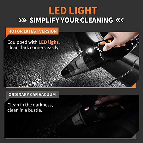 Why HOTOR: Fast and easy cleaning in a corded handheld car vacuum with lasting and high power, no worry about the issue of continuation, you can use this car mini vacuum whenever and wherever you want for your car, a great helper for vacation.