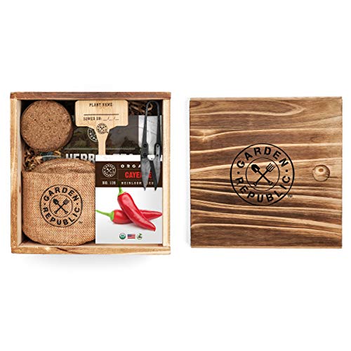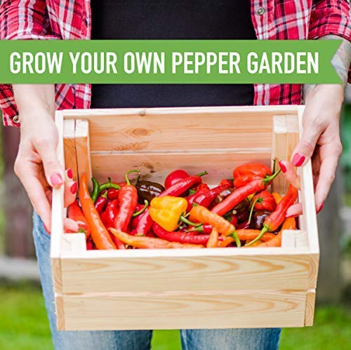 Indoor Pepper Seed Starter Kit – Pepper Growing Kit with 4 Non-GMO Hot Pepper Seeds, Wood Planter Box, Soil, Pots, Plant…